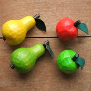 ヘタは現在フェルトのもののみとなります。洋なしH8.5cm りんごH6.5cm素材:天然木 CE フェルトドイツ製※天然素材、手作りになります。