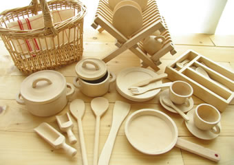 最安値を楽天市場で探す>木のおもちゃ ままごとセット 木のお鍋食器豪華セット